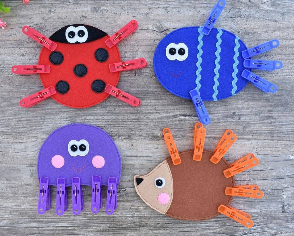 Забавные прищепки. Игра, которую с лёгкостью можно сделать самостоятельно. Достаточно вырезать из картона силуэт животного и купить разноцветные прищепки.