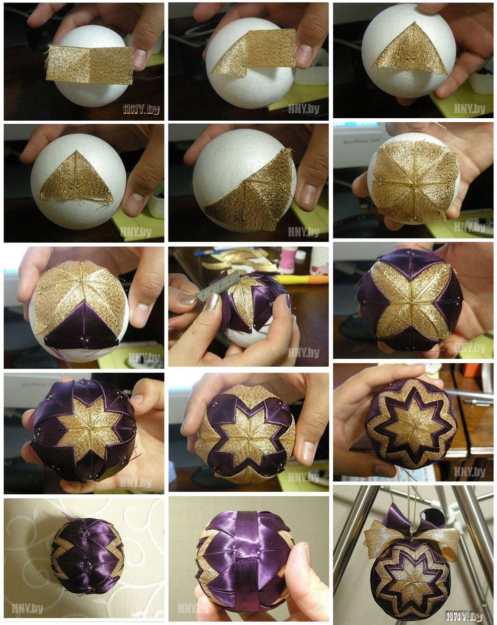 Отличным вариантом новогодней поделки в школу для усидчивых девочек станет елочный шар в технике артишок (лоскутное шитье). Суть техники заключается в нашивании на основу вырезанных деталей в определенной последовательности. В этом МК Вы узнаете как сделать шар в технике артишок из лент.