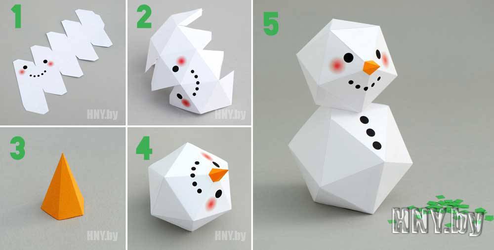 В качестве новогодней поделки в школу в 4 класс можно сделать объемного снеговика из бумаги. Поделка поможет объяснить ребенку суть трехмерного моделирования на основе простой новогодней поделки. Взрослым, кстати, тоже будет интересно!