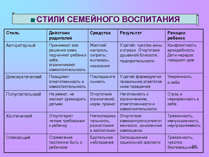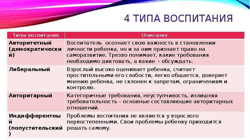 Типы семейного воспитания