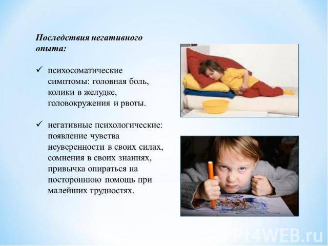В результате – эмоциональный взрыв в виде протестов, особенно в периоды детских кризисов, или так называемая психосоматика.