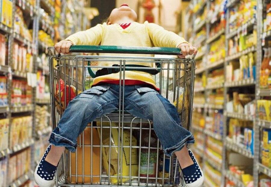 • Ребенок будет голодным. Если не покормите дите перед тем, как идти в магазин, оно будет выпрашивать все подряд и ныть просто потому, что хочет кушать. Если взрослый входит голодным в магазин, то тоже совершает массу лишних покупок. Не забудьте любимый перекус. Если живете в большом городе, дорога может стать долгой, и ребенок снова успеет проголодаться. На этот случай возьмите с собой воду и то, чем можно «заморить червячка». Сэкономите на чебуреках и пирожках в переходе и устраните риск пищевого отравления. Воду берите в любом случае. Иначе придется покупать вредный лимонад. Не забывайте про ребенка, пока ищете продукты. Попросите помощи у него. Если ребенок более сознательного возраста, умеет читать или обладает другими необходимыми знаниями, займите его. Пусть вместе с вами смотрит сроки годности и выбирает ценник, на котором стоимость ниже. Это полезно для интеллектуального развития, в будущем пригодится, и ребенок не заскучает. Придумайте какую-нибудь неразрушительную и не слишком шумную игру, которая развеселит вас и ребенка. Так вы избежите самого раздражающего вопроса: «Скоро? Я устал(а).»