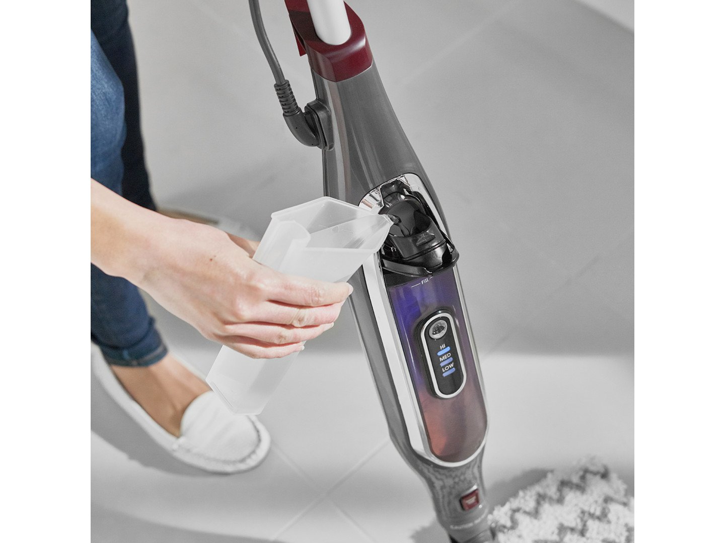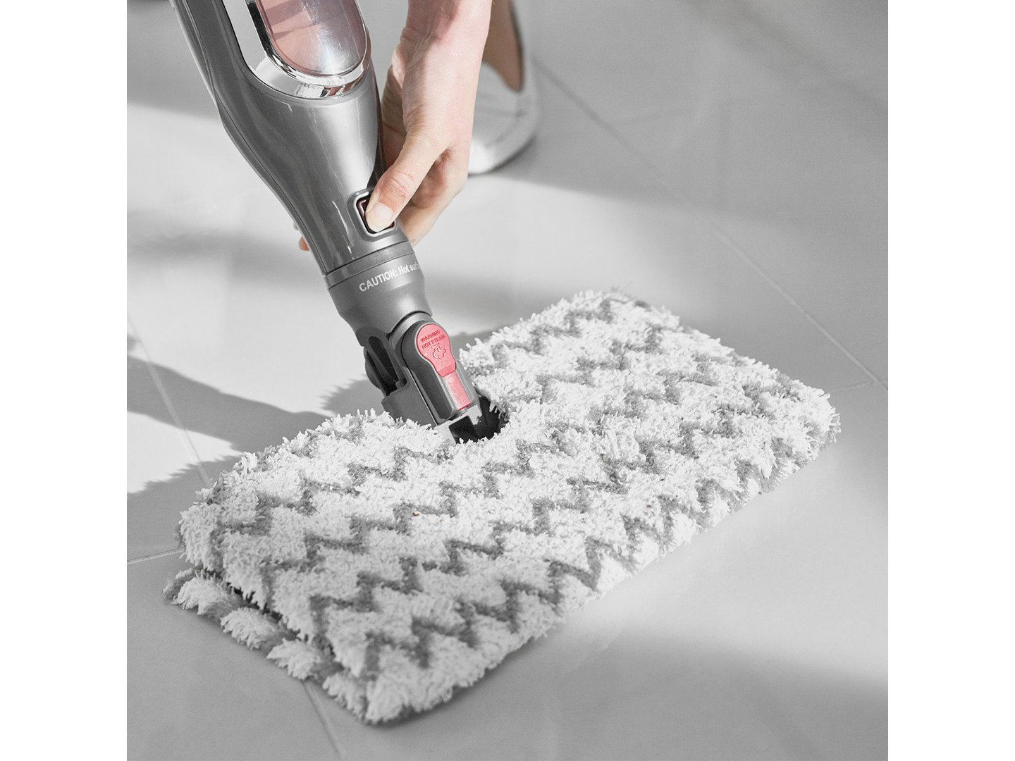 - гигиеничность – после очередной уборки можно быстро и без помощи рук снять салфетку с паровой насадки: нажать клавишу для открытия насадки и возможности извлечения салфетки;