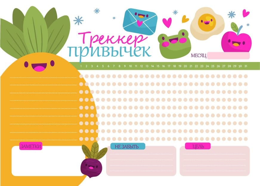 Чтобы эффективней сформировать привычку, ведите учёт действиям ребёнка. Превратите это в увлекательный челлендж — распечатайте трекер привычки и повесьте на видное место, например, холодильник. Каждый раз при выполнении действия ребёнок поставит галочку.