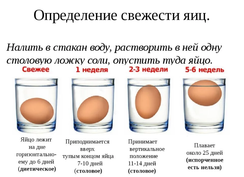 Покупать куриные яйца следует в магазинах или супермаркетах, где продукт проходит проверку и маркируется с птицефабрики. Свежесть можно проверить, опустив яйцо в кастрюлю с холодной водой. Если двухнедельное яйцо будет плавать посередине, меньше недели – опустится на дно, а непригодное для употребления всплывет на поверхность.
