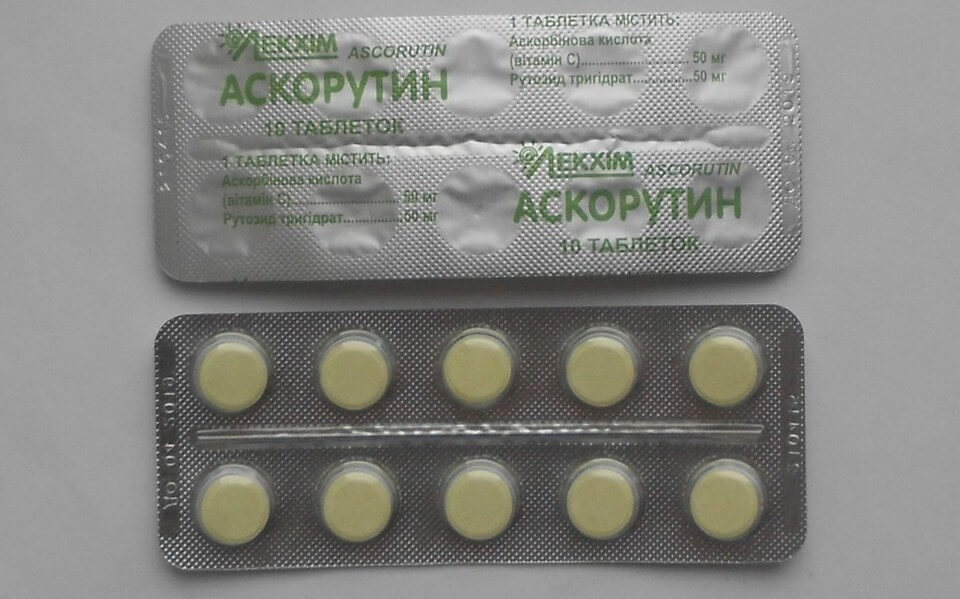 - Аскорутин – такие таблетки принимают после еды по 1 штуке трижды в день. Для профилактики принимают по таблетке, но дважды в сутки. Курс такого лечения составляет месяц.