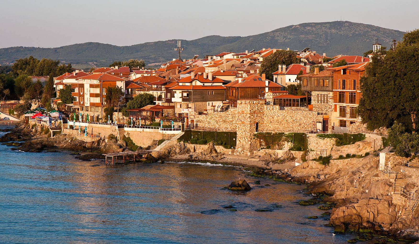Созополь — большой город на южном побережье: маленькие и большие магазины, кафе на скалах у моря, где можно просидеть вечность, сувенирные развалы, выступления заезжих певцов, чтобы было куда сходить вечером — в общем, здесь можно вести настоящую курортную жизнь. Только пляжи маловаты, поэтому новые отели строятся в отдалении от города.