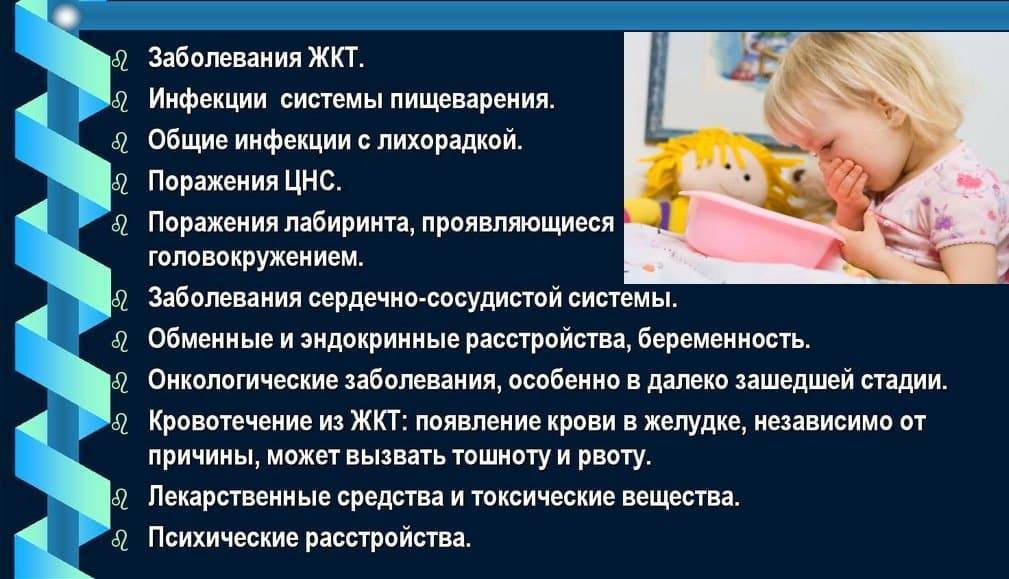 У детей приступы тошноты в сопровождении рвоты возникают чаще всего из-за некачественной пищи и инфекций. Сами заболевания необходимо лечить в комплексе после осмотра врачом, а как симптоматическое средство применять противорвотные препараты.