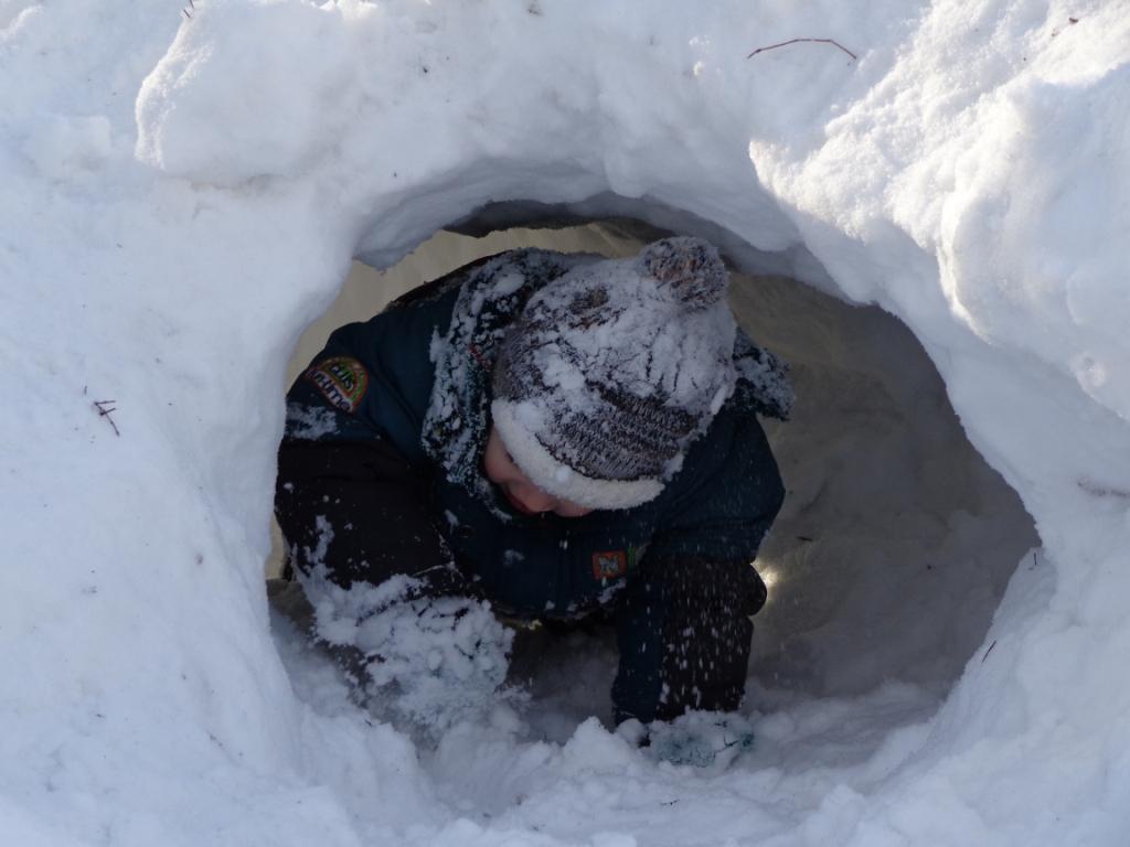 Малыши очень любят спрятаться или играть в хищника, который появляется из укрытия. Из свежего снега можно сгрести сугроб, в котором сделать пещеру. Малыш в ней спрячется, а мама будет поджидать рядом и ловить его, когда вылезет.