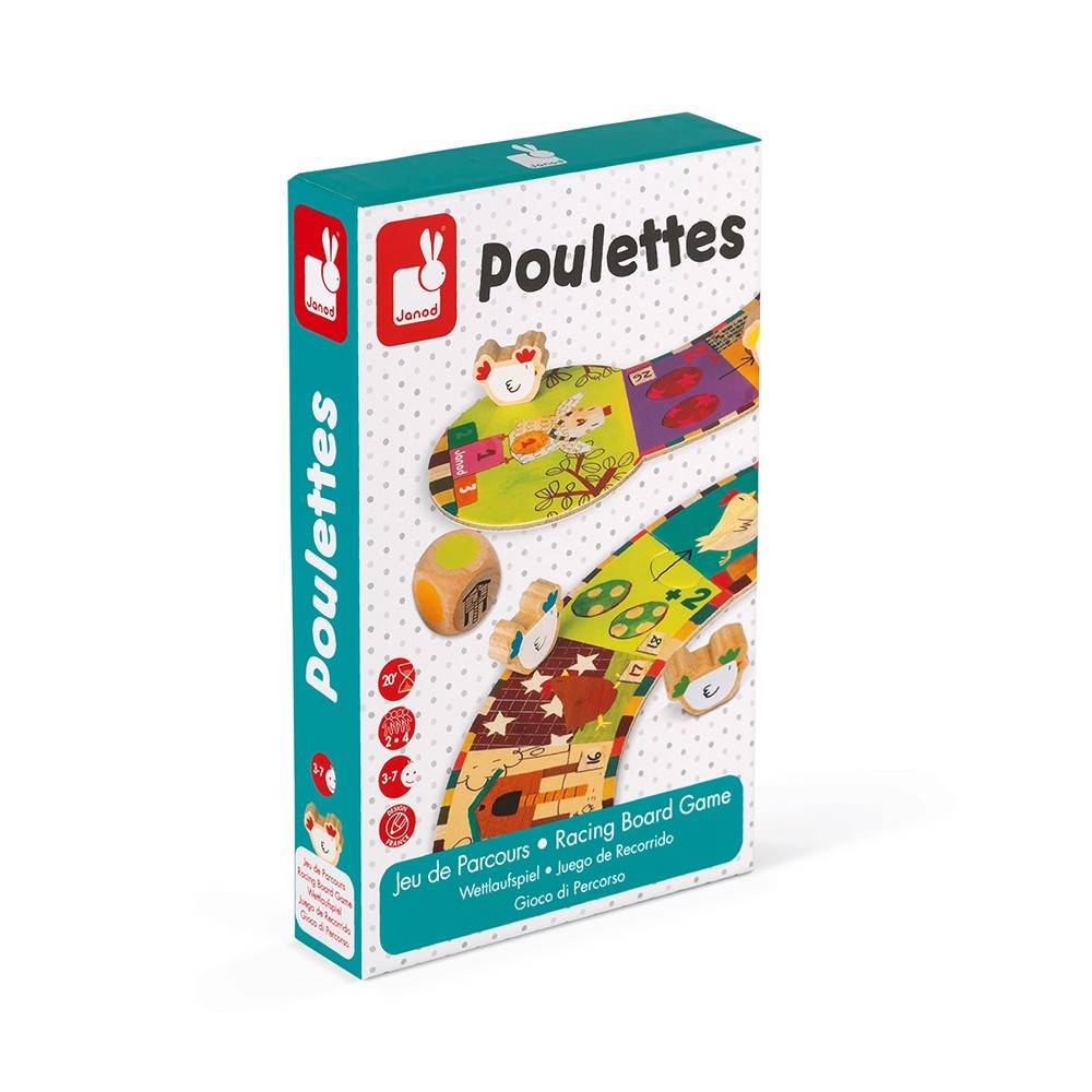 Настольная игра для детей «Цыплячьи бега» очень проста. Две курочки и два петушка бегают друг за другом. Цель преследования – забрать у обгоняемого хвост и воткнуть к себе в … специальную дырочку под хвостиком. У кого больше хвостов – победил!