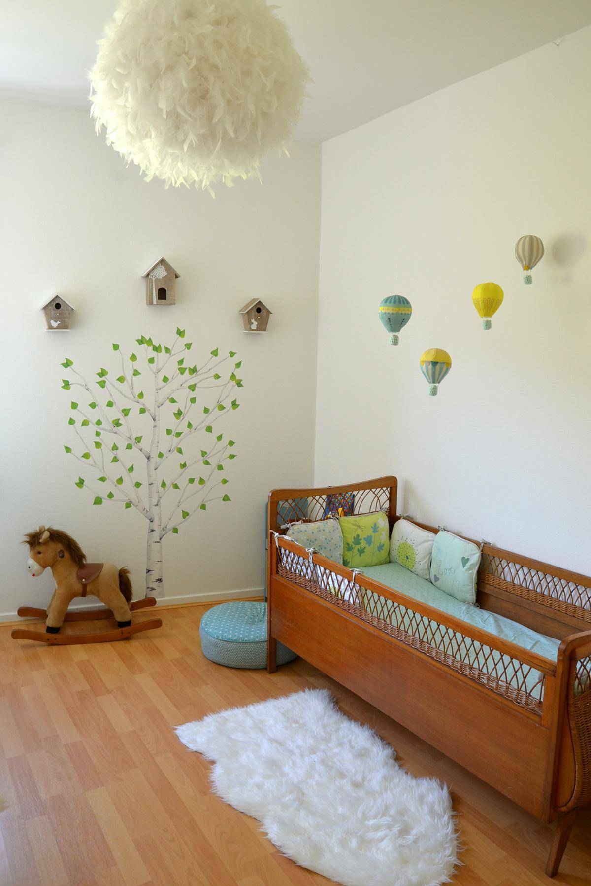 В дизайне спальни с кроваткой часто используют свежую палитру. Нежный салатовый делает комнату комфортной и живой. Небесно-голубой привнесет в помещение южной ориентации легкую прохладу. Светло-бирюзовое оформление позволяет применять синий и зеленый в зонах ребенка и взрослых.