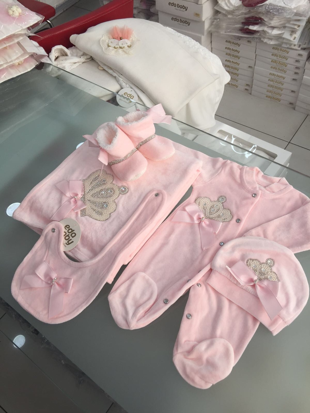 Для принцесс принято покупать вещи розового цвета, а для принцев — голубого. А если родители не знают пол малыша, то можно купить универсальный набор для новорожденного.
