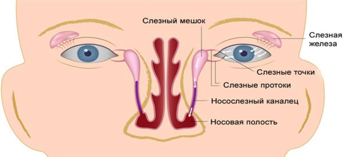 При рождении малыша носослезные каналы у детей перекрыты желатиновой пленкой, которая под воздействием слез должна раствориться в первые две недели жизни ребенка. Однако у 6% новорожденных этого не происходит по причине повышенной прочности пленки или аномального строения каналов и костей черепа, что затрудняет отток слез.