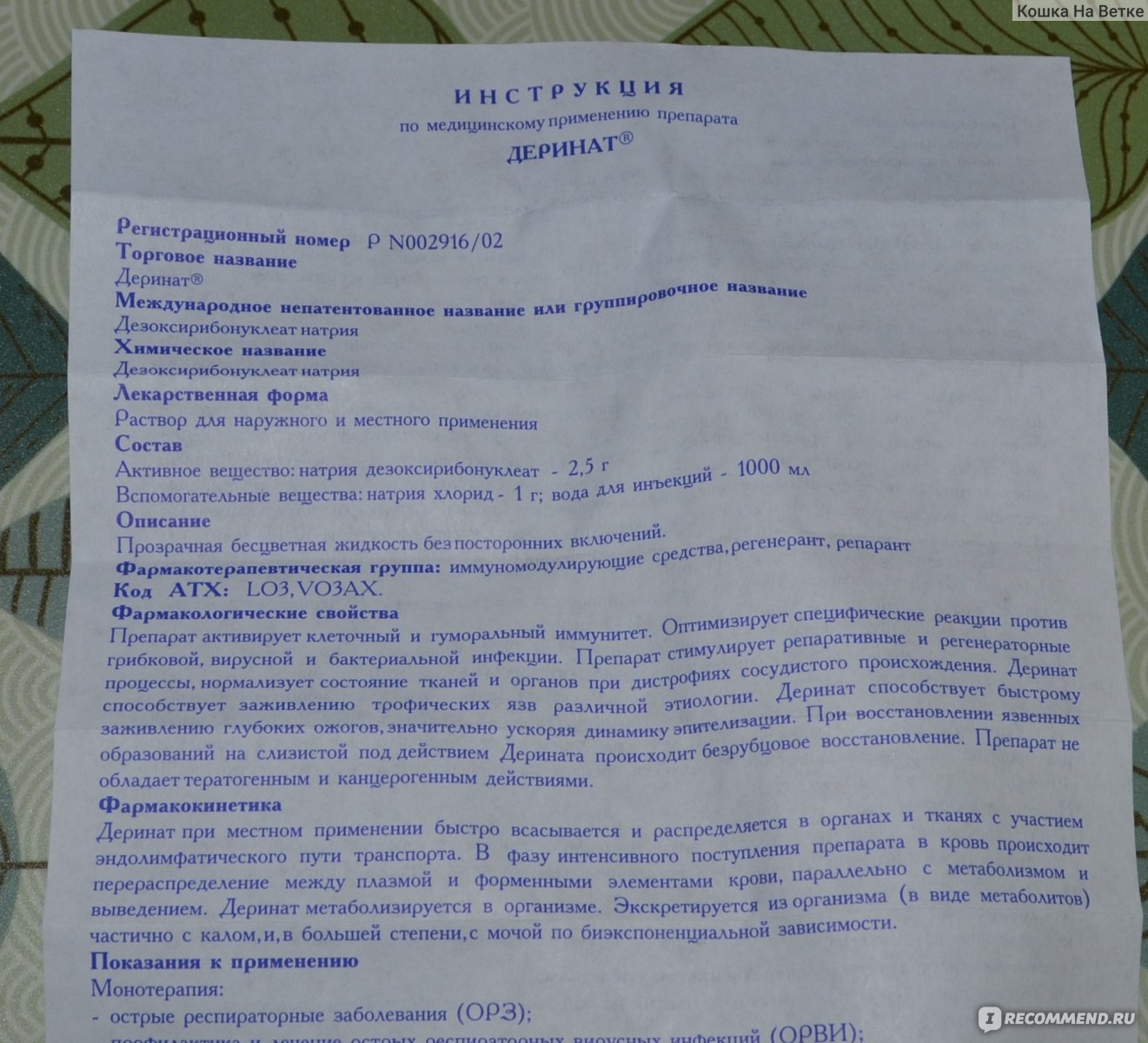 Механизм действия препарата Деринат