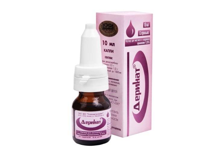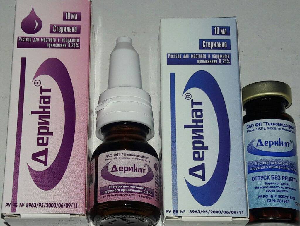 Деринат используют местно и внутренне. Им поласкают ротовую полость, закапывают в нос, глаза, делают компрессы, гинекологические орошения