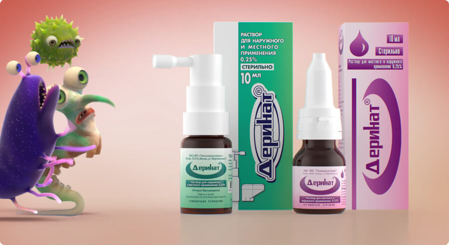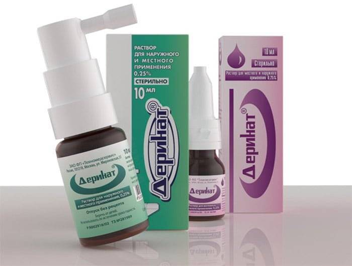 Деринат в форме раствора для наружного и местного применения применяют в зависимости от локализации протекающего процесса.