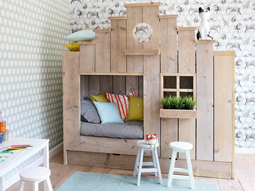 Отдельное внимание нужно уделить высоте конструкции и острым углам. Старайтесь делать все таким образом, чтобы ребенку было в домике комфортно и при этом он не смог себе навредить