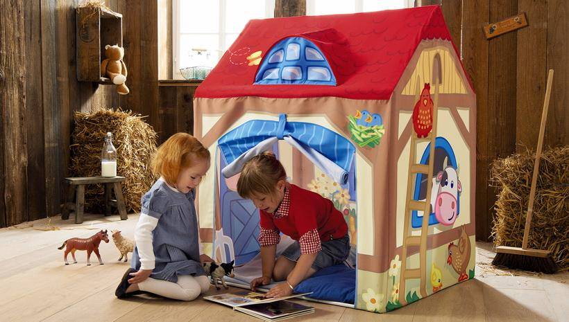 Палатка — это отличный вариант бюджетного укромного местечка для вашего ребенка, который не предоставит вам трудностей при сборке и установке. В современном мире данный вид домика уже усовершенствовали и вместо привычной нам палатки мы можем наблюдать дополнительные приспособления в виде колец для игр с мячом, трубы и прочие другие элементы, которые вызовут восторг у ребенка.