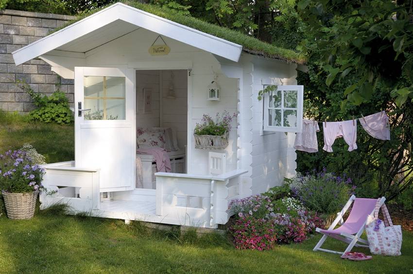 Кстати в летний период можно оборудовать в подобном домике специальное спальные места. Детишки будут в восторге от такой идеи.