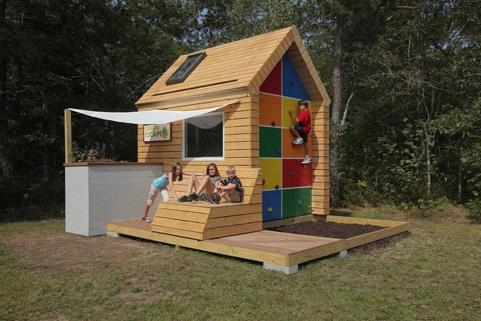 Если подходящего крепкого дерева на территории загородного дома нет, то предлагаем просто поставить домик для игр на свободном участке. Радость детей от такого решения будет не меньшей. Подбирать подходящий вариант домика стоит исходя из размера территории, а также финансовых возможностей. Дело в том, что существуют огромные конструкции, которые больше напоминают дворец. Безусловно, стоимость их будет очень высока, так как для его создания используется много материала.