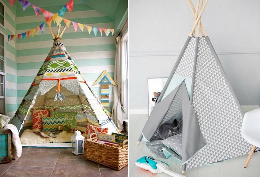 Вигвам — скандинавский домик, который точно не сможет навредить атмосферу вашего интерьера. Для ребенка это будет очень интересный вид игрового места. Вигвамы постепенно набирают обороты в продаже на российских рынках, хотя ассортимента, все-таки, больше пока на европейском рынке.