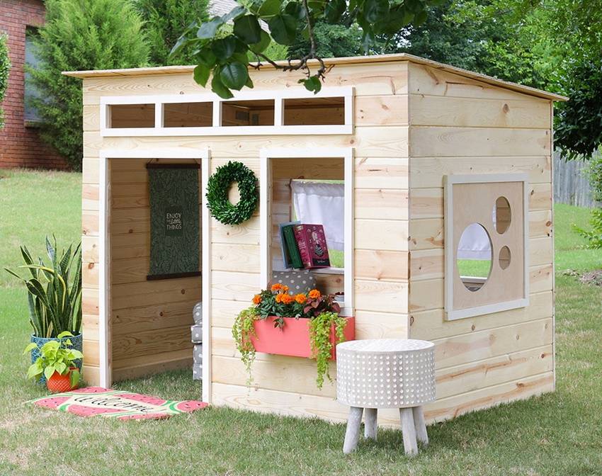 Также можно сделать такой домик своими руками. При правильном выборе материала и качественной работе, результат будет выглядеть действительно потрясающе. Для деток такой домик будет настоящим предметом гордости и любимым местом для игр.