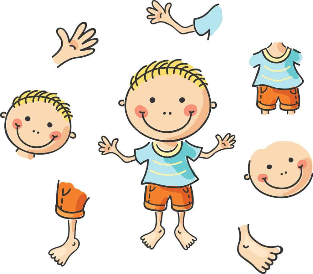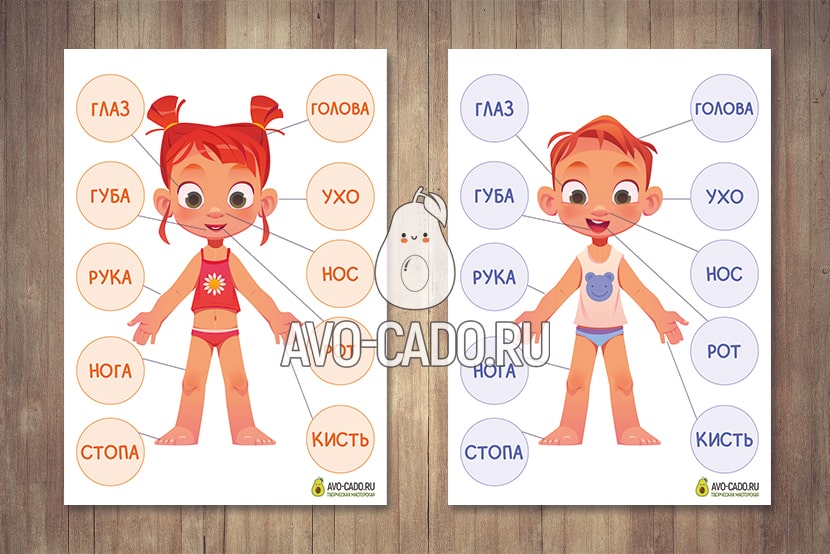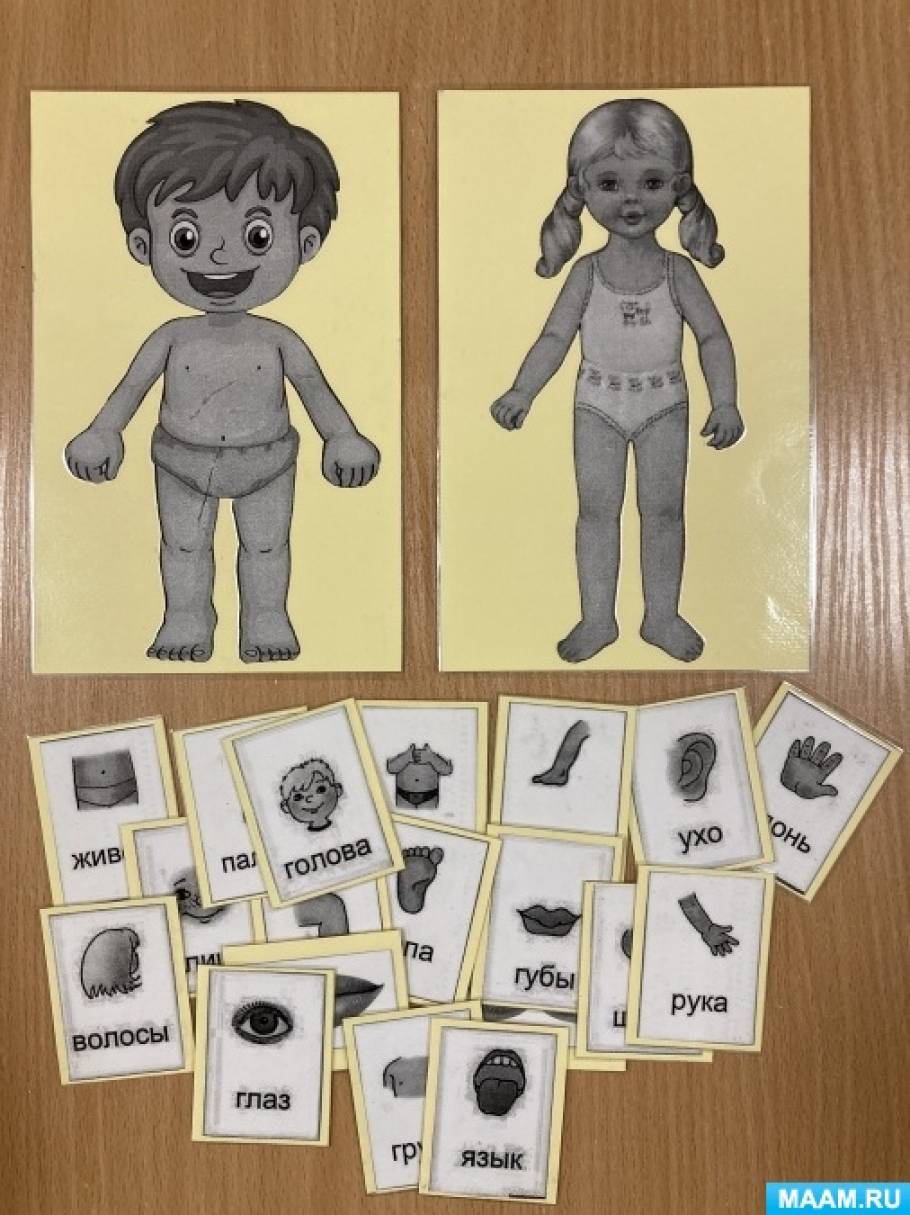 Вырезки. Можно распечатывать и вырезать ножницами изображения частей тела. Задача ребенка сложить их в нужном порядке. Так делают в играх для смартфонов и прочих устройств. Если картинка контурная, то ее можно раскрасить.