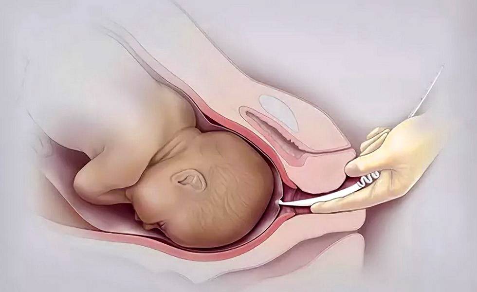 - во время родов малыша извлекает врач и, если выполнена спинно-мозговая анестезия, роженица в процессе операции может увидеть своего ребёнка и услышать его первый крик.