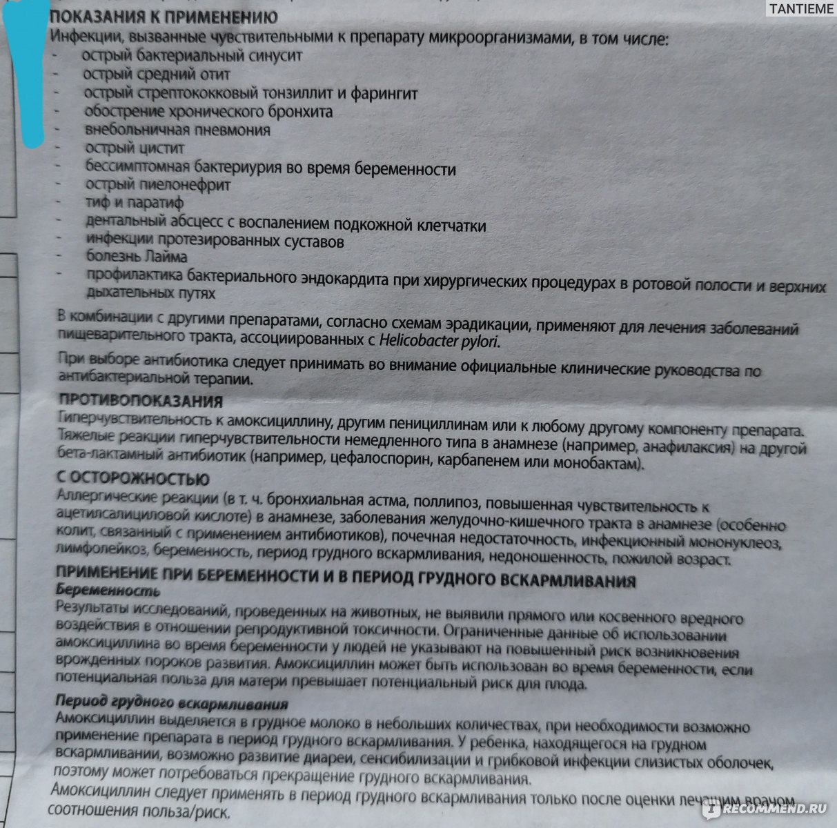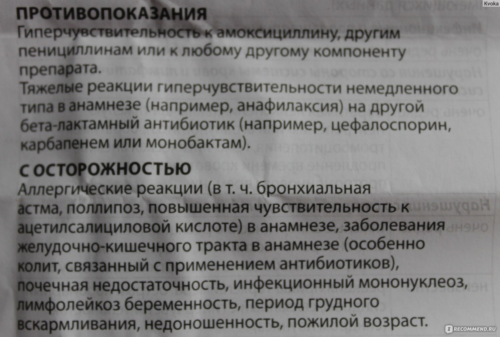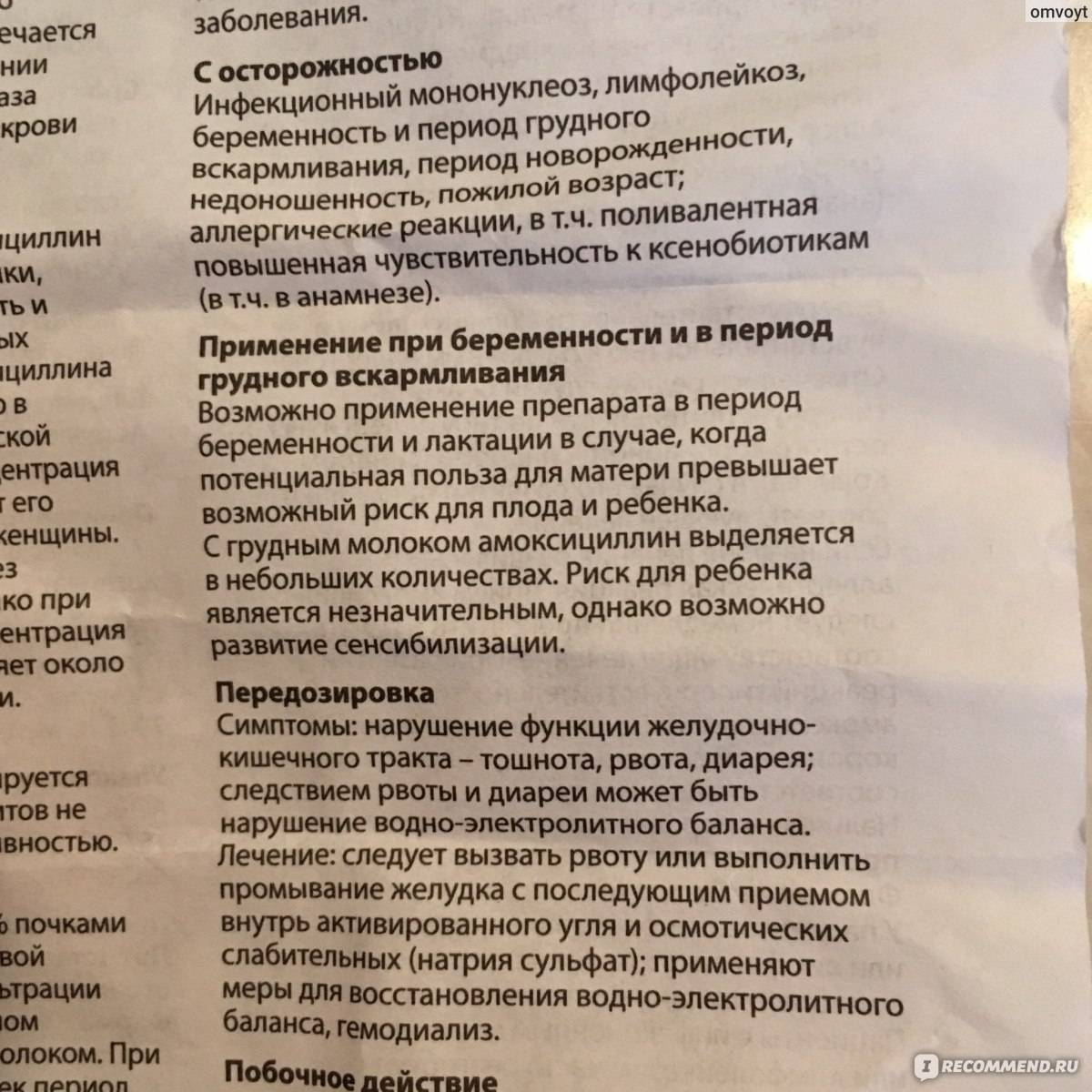 Для людей с низкой резистентностью к амоксициллину, при хронических формах заболевания есть вероятность возникновения суперинфекций.