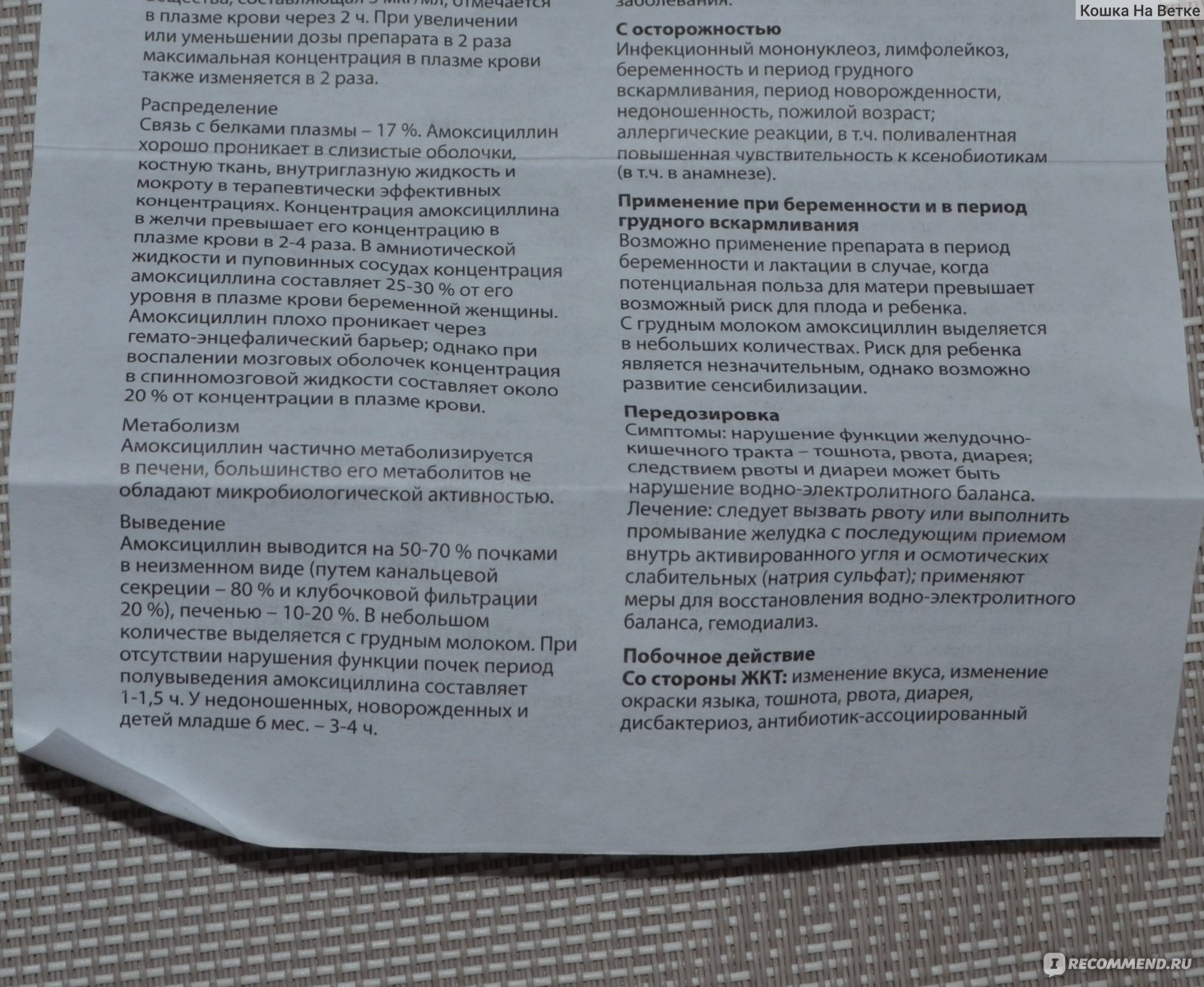 Высокие нормы дозирования назначают при острых воспалительных процессах. Также передозировка амоксициллина возможна в случае, если процесс выведения препарата замедлен. В результате могут проявляться следующие отклонения: