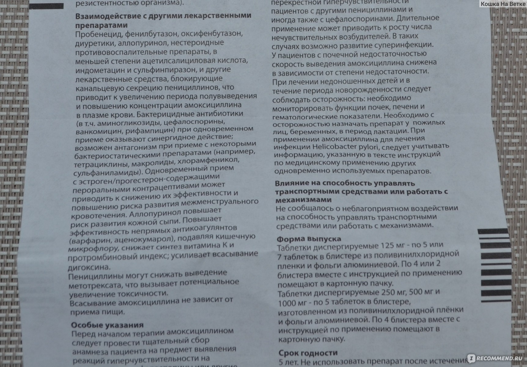 К таким относят «Хлорамфеникол» и «Сульфаниламиды». Одновременное использование других пенициллинов в два раза повышает концентрацию амоксициллина в крови, что вызывает ряд побочных эффектов.