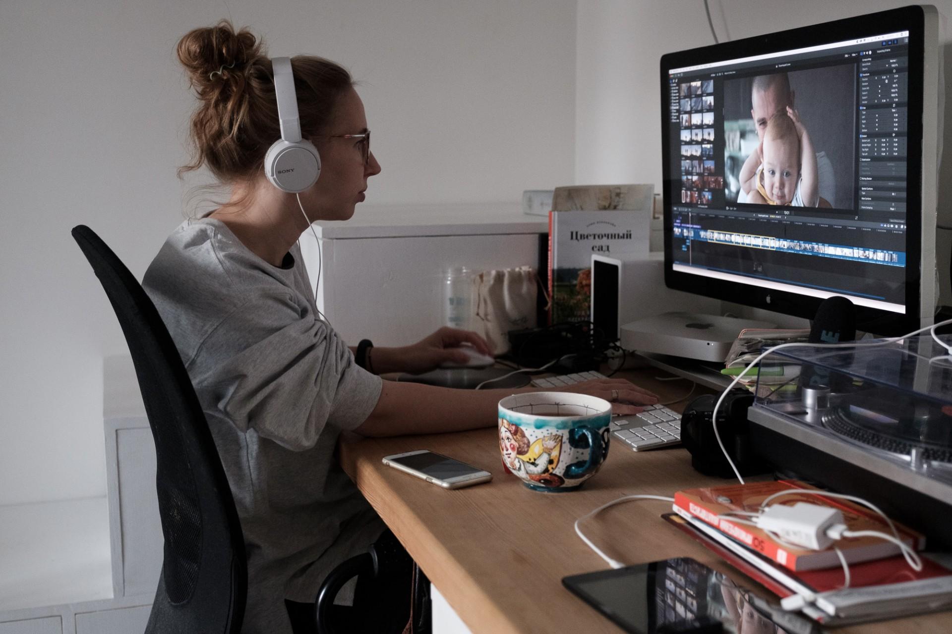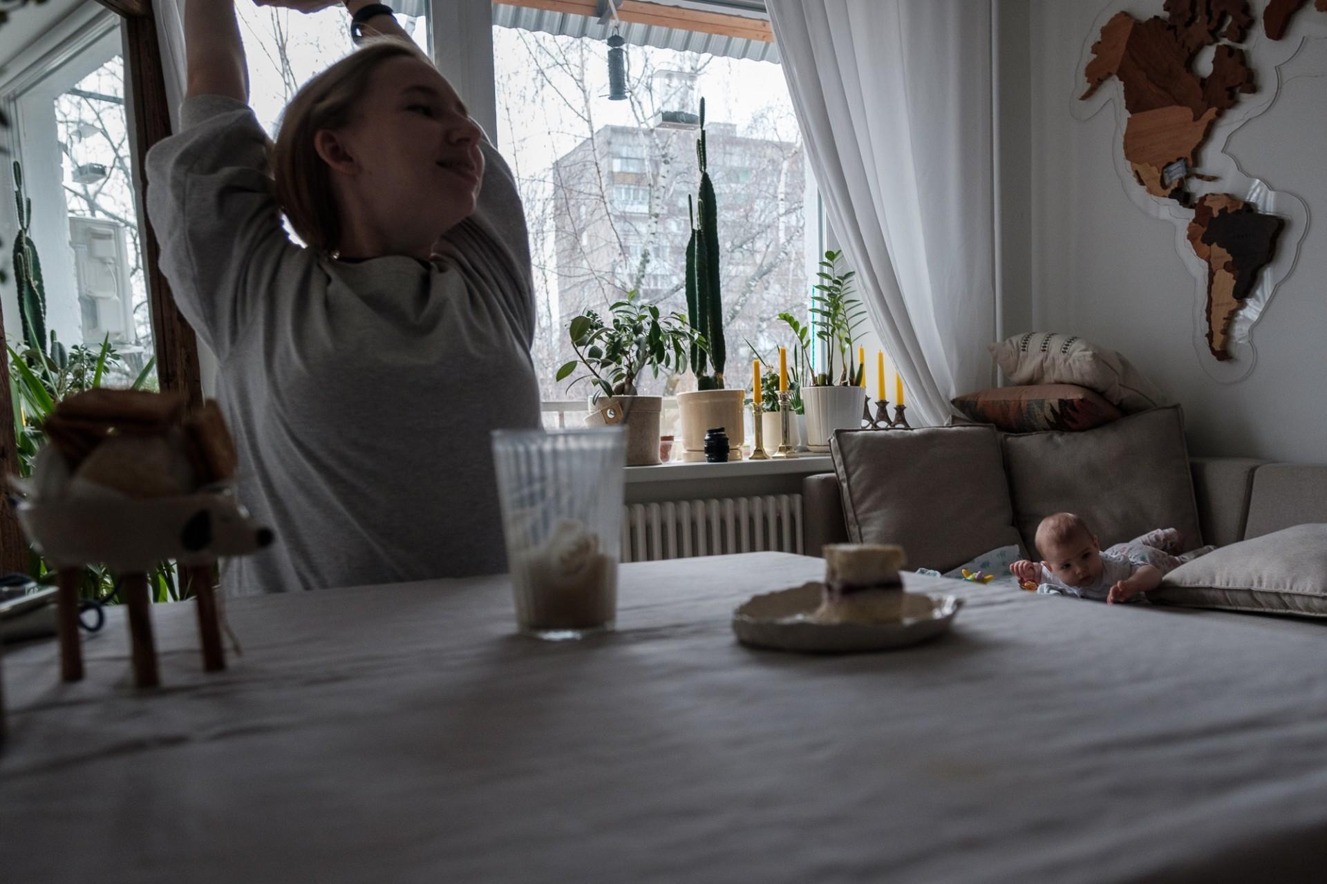 И Даша, и ее муж, Дима, работают из дома. Старший сын ходит в детский сад, а младшая дочь, еще никуда не ходит — только недавно научилась переворачиваться на животик.