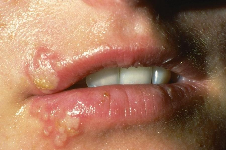 Маленькие пузырьки чаще всего на губах, на других частях лица или же на гениталиях возникают внезапно и причиняют боль. Они зудят и покалывают, после того как пузырьки лопаются, образуется корочка, а боль только усиливается.