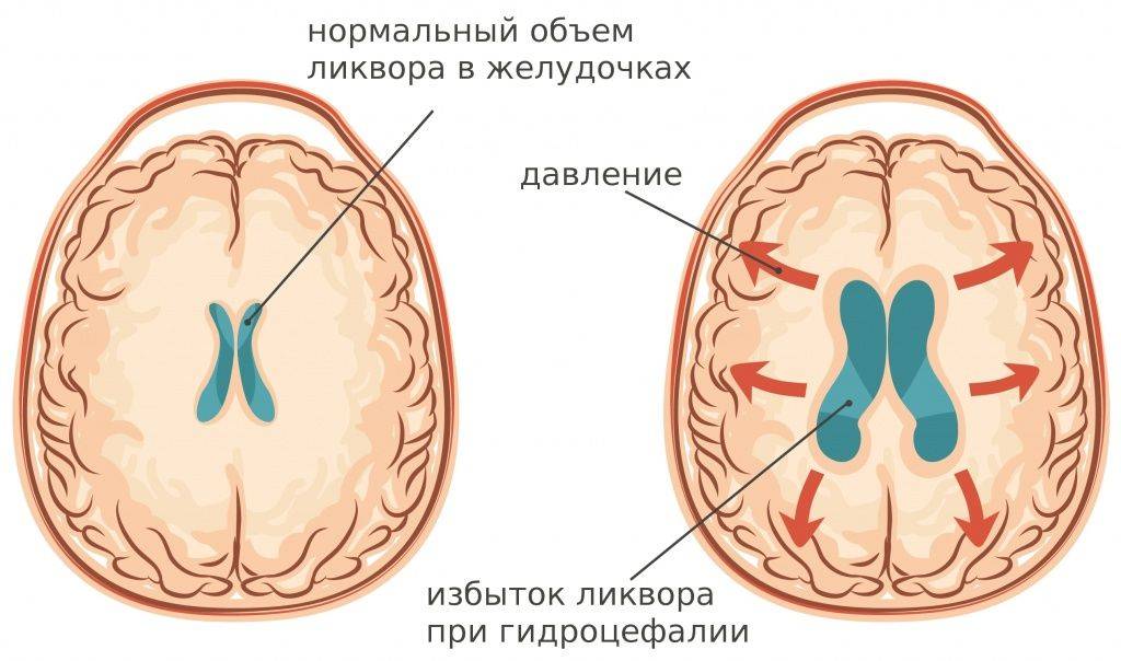 Гидроцефалия возникает у детей и взрослых любого возраста. Чаще всего гидроцефальный синдром возникает именно у детей. Если ликвор начал собираться, пока не срослись кости черепа, то окружность детской головы увеличивается, череп деформируется, что можно заметить невооруженным глазом.