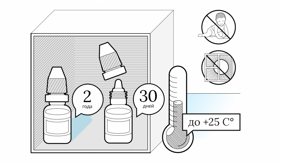 При этом флакон не должен соприкасаться с пальцами, глазной поверхностью или веком. После надо сомкнуть веки и ненадолго прижать палец к внутреннему углу глазной щели.