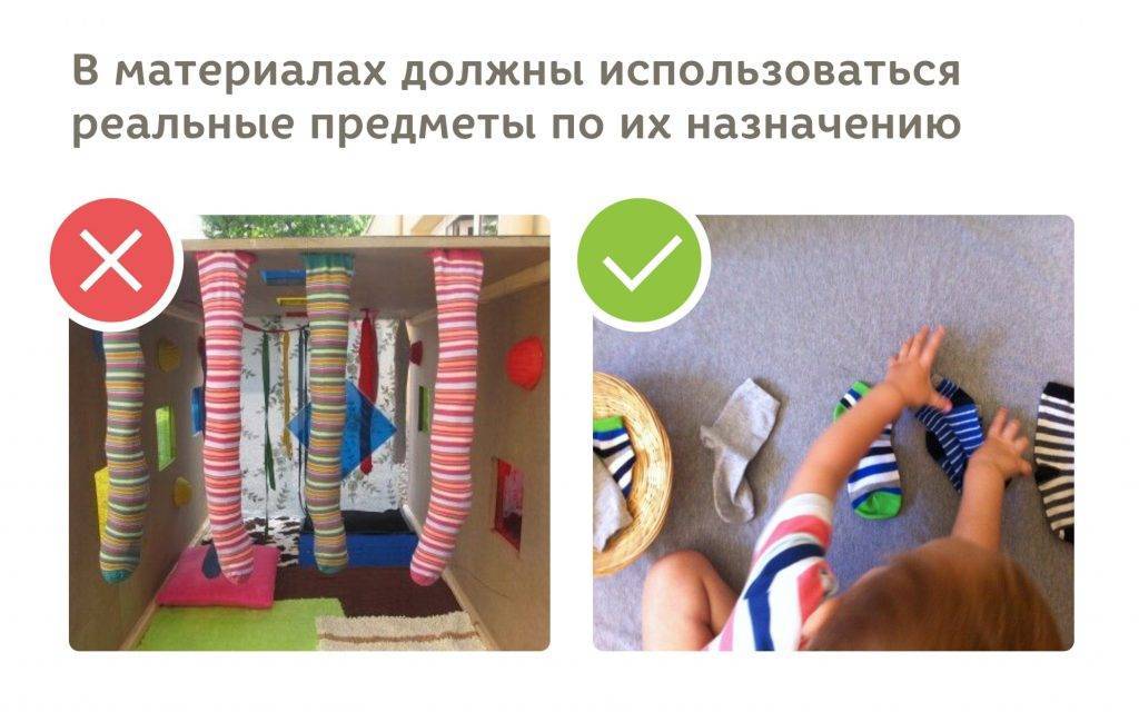 - каждый предмет, используемый ребёнком, должен быть настоящим, а не муляжом либо игрушкой (то есть малышу нужно давать, к примеру, настоящий совок и веничек).