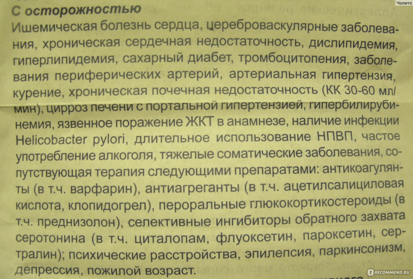 - одновременное применение антикоагулянтов, антиагрегантов, пероральных глюкокортикоидов, селективных ингибиторов обратного захвата серотонина;