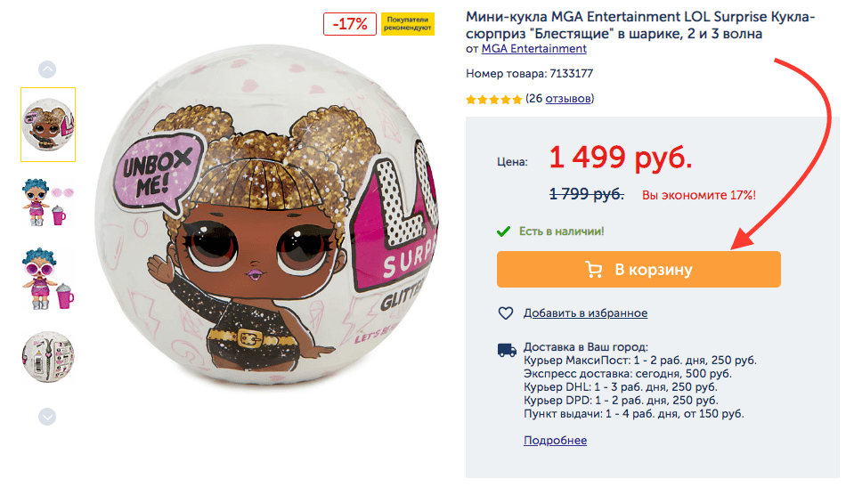Чтобы купить товар, нажмите кнопку «В корзину».