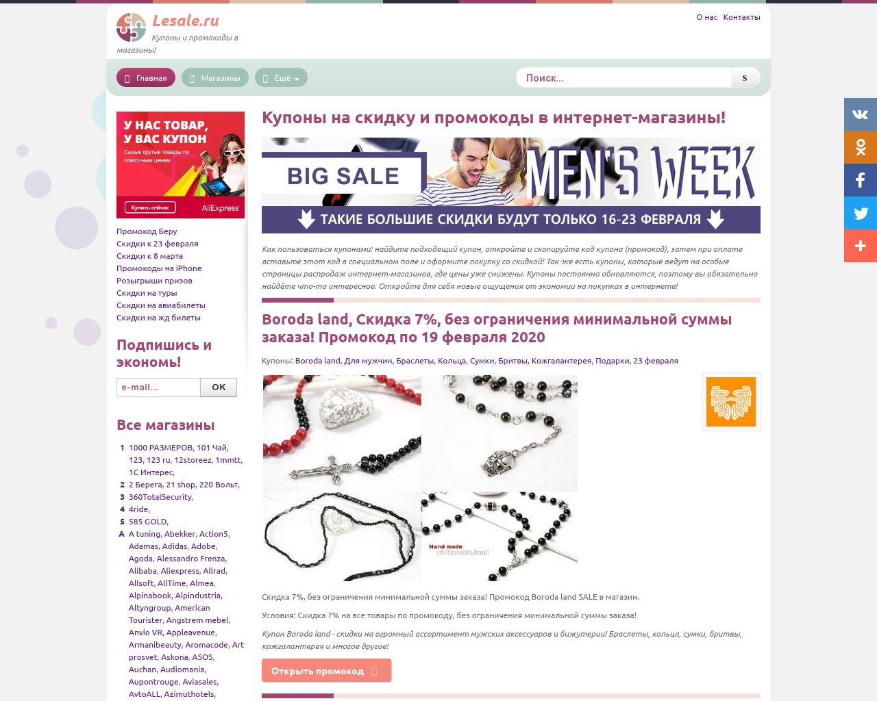Купоны представляют собой особые коды, которые при введении на сайте магазина дают право на уникальную скидку или дополнительные бонусы. Предложения разнообразны: магазин старается радовать клиентов, изобретая все новые акции.