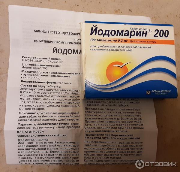 - 2 таблетки Йодомарин 100;