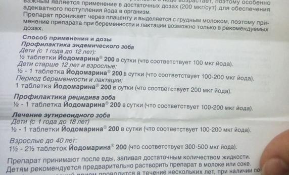 Применение препарата Йодомарин