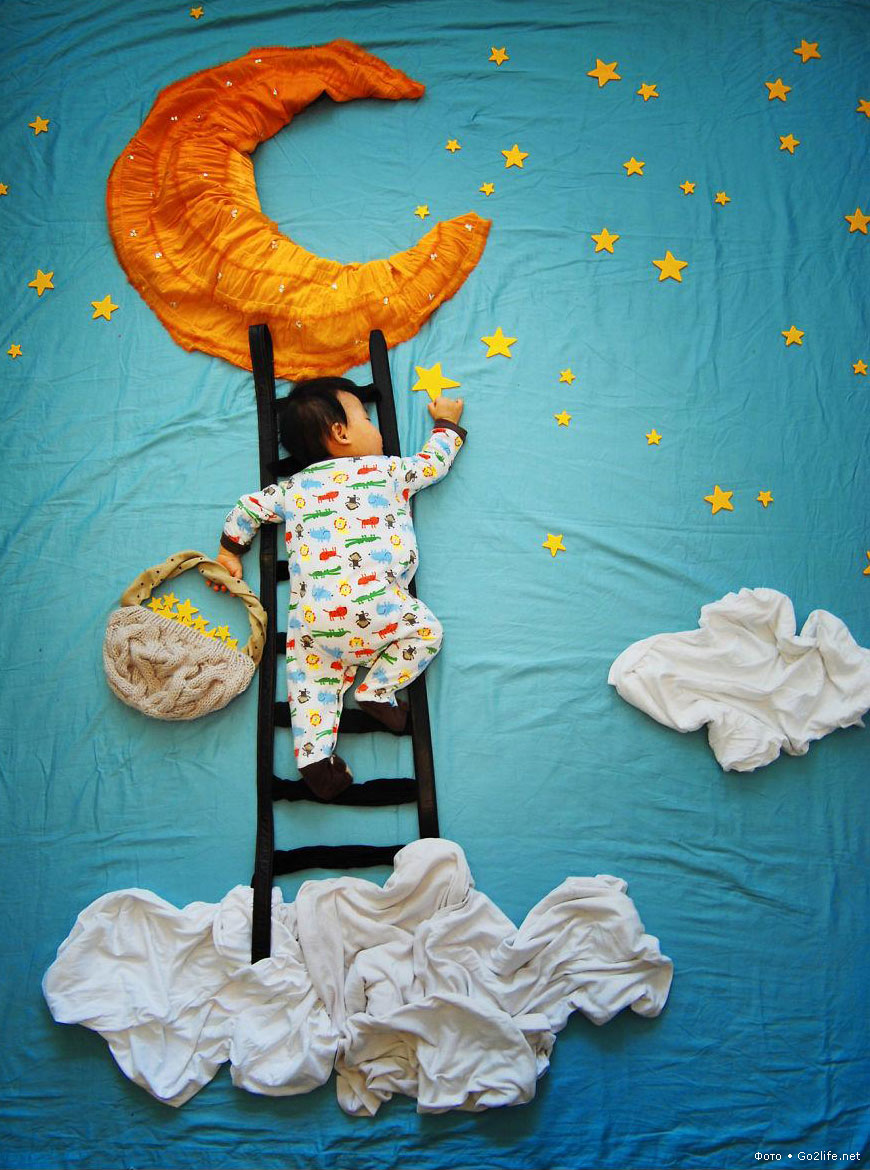 Спящий грудной ребенок – отличная основа для реализации фантастических сюжетов. За пару часов вокруг новорожденного можно создать волшебство.