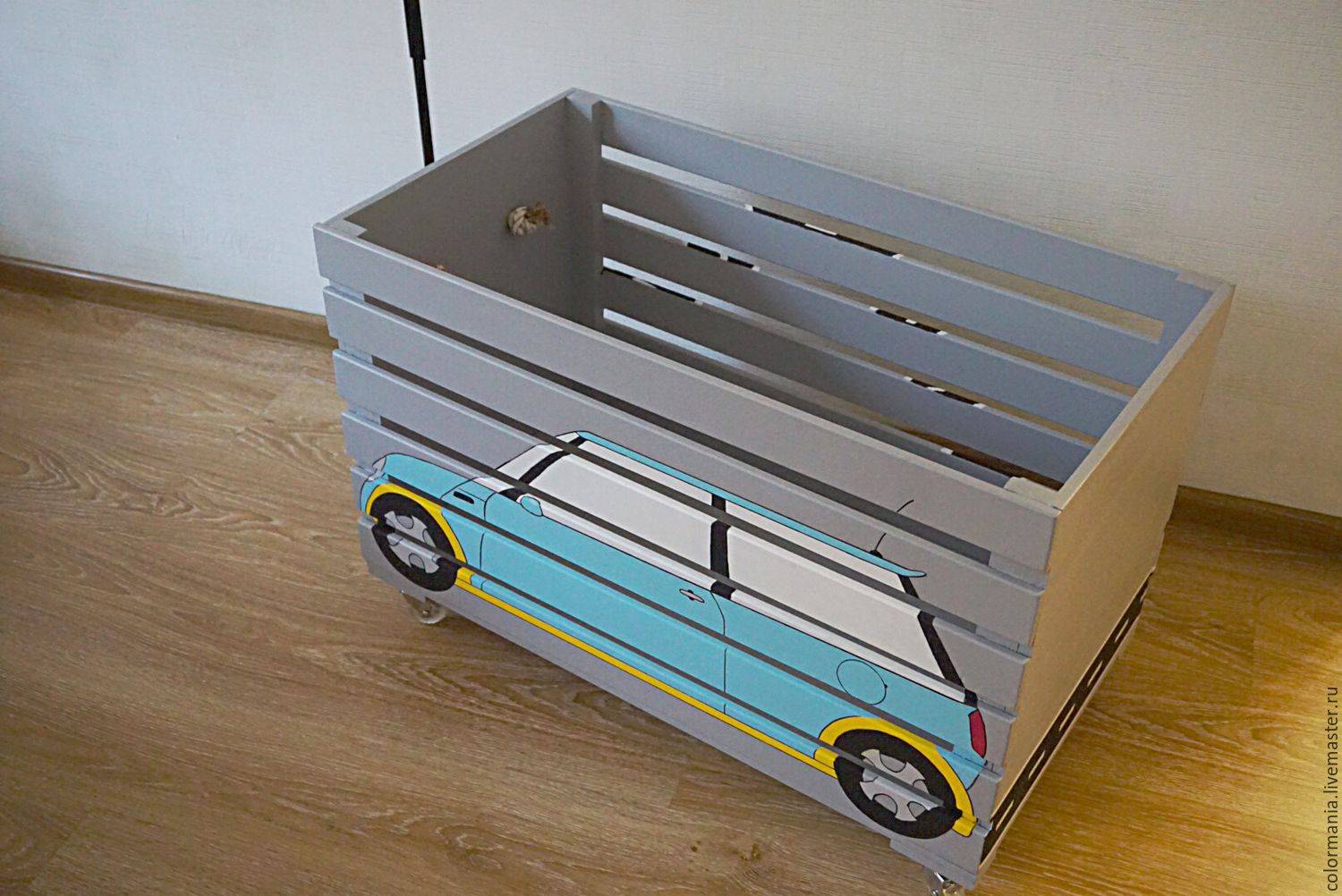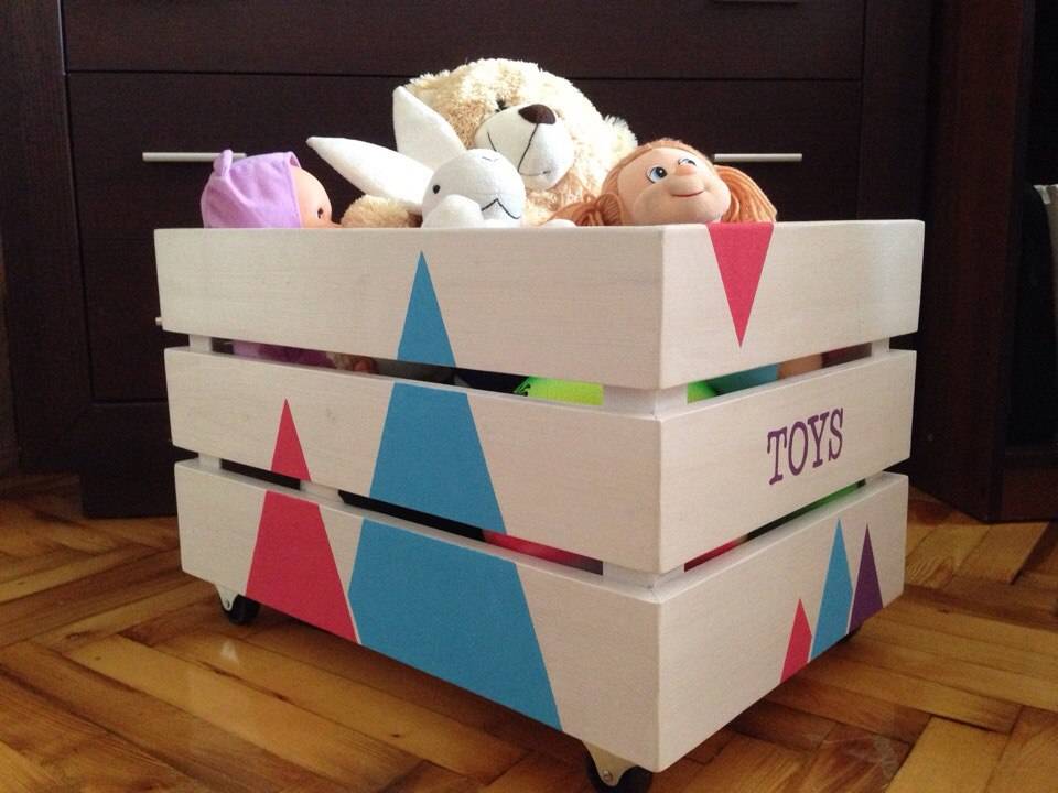 4. Можно использовать и обычный деревянный ящик, но перед тем, как поставить его в детскую, его нужно хорошенько обработать, чтобы ребенок не получил занозу. А если к ящику прикрутить маленькие колесики, его можно будет с легкостью передвигать по комнате или квартире.