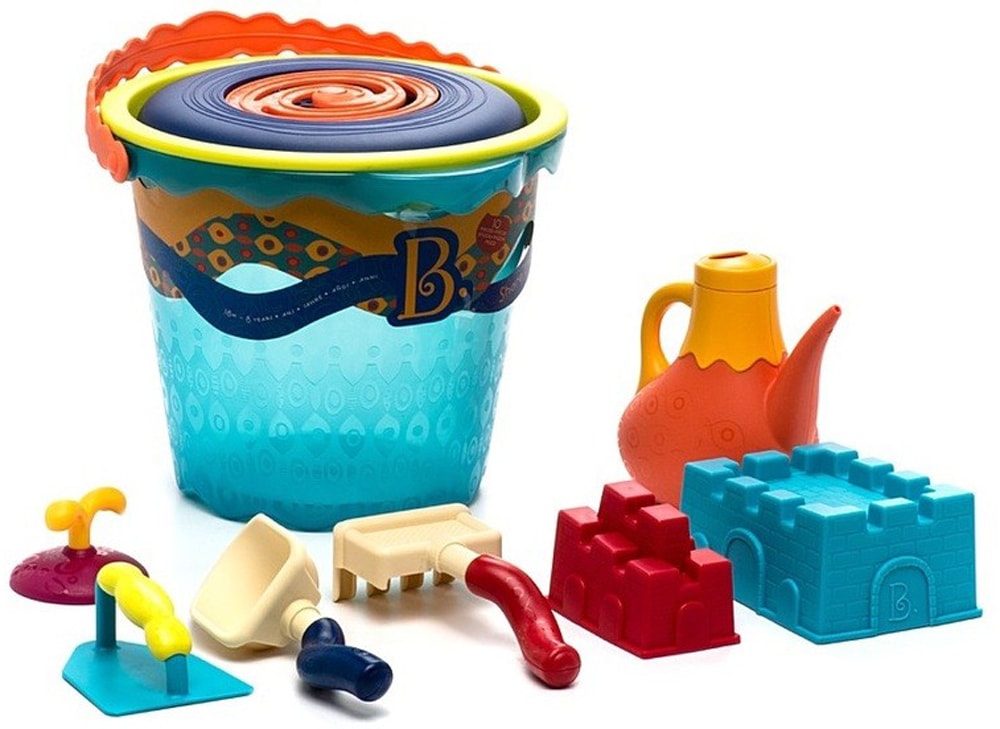 3. Ведро. Можно использовать старое ведро, разукрасив его яркими цветами. Желательно использовать ведро из пластика, так как железное будет громко шуметь при использовании. Также лучше, если оно будет с крышкой, чтобы на игрушки не попадала пыль, если ребенок не пользуется ими каждый день.