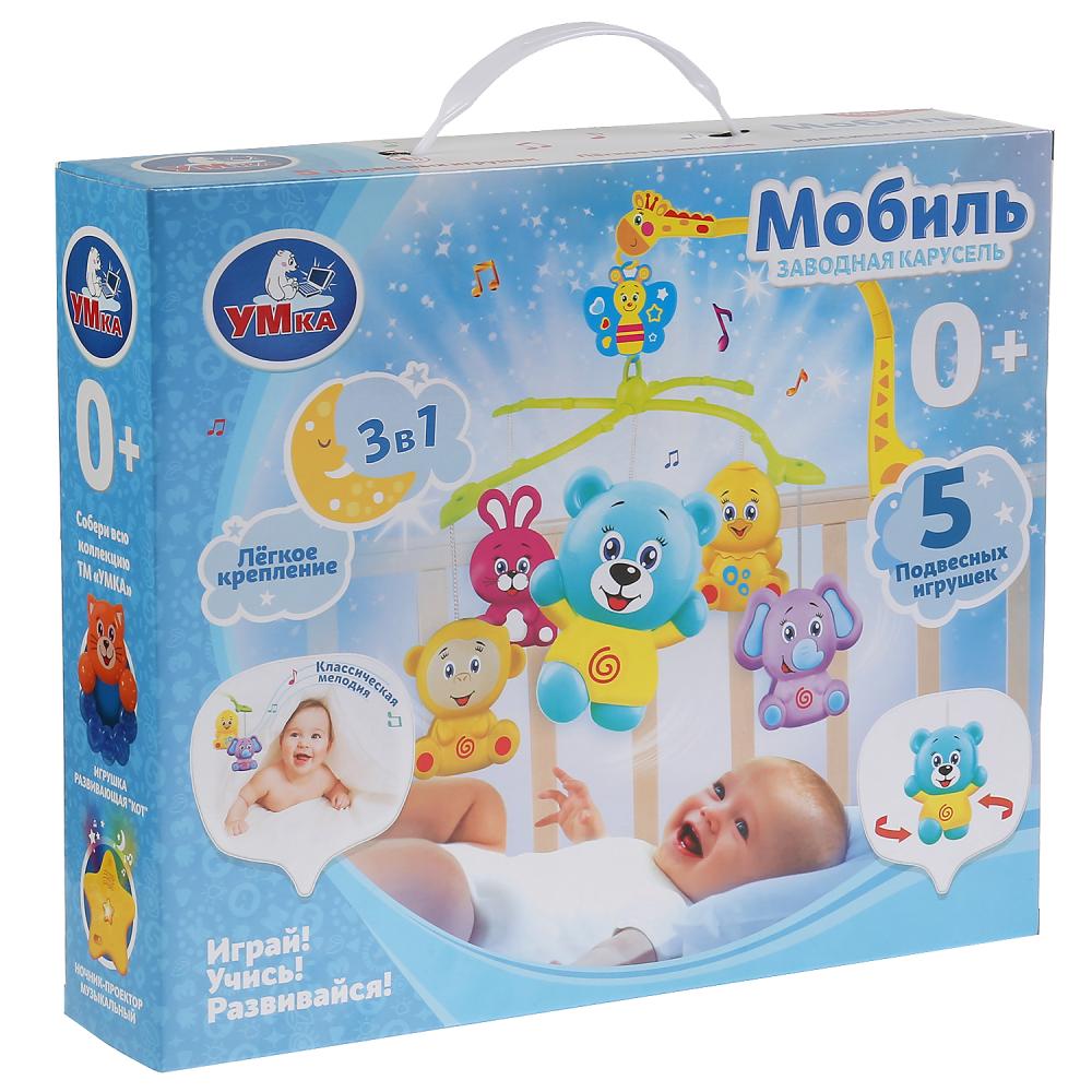 Когда музыкальный мобиль включается, звучит негромкая музыка. Это могут быть звуки дождя, моря, спокойные классические мелодии, песни из мультипликационных фильмов. Некоторые модели дополнительно оснащены проектором, ночником.