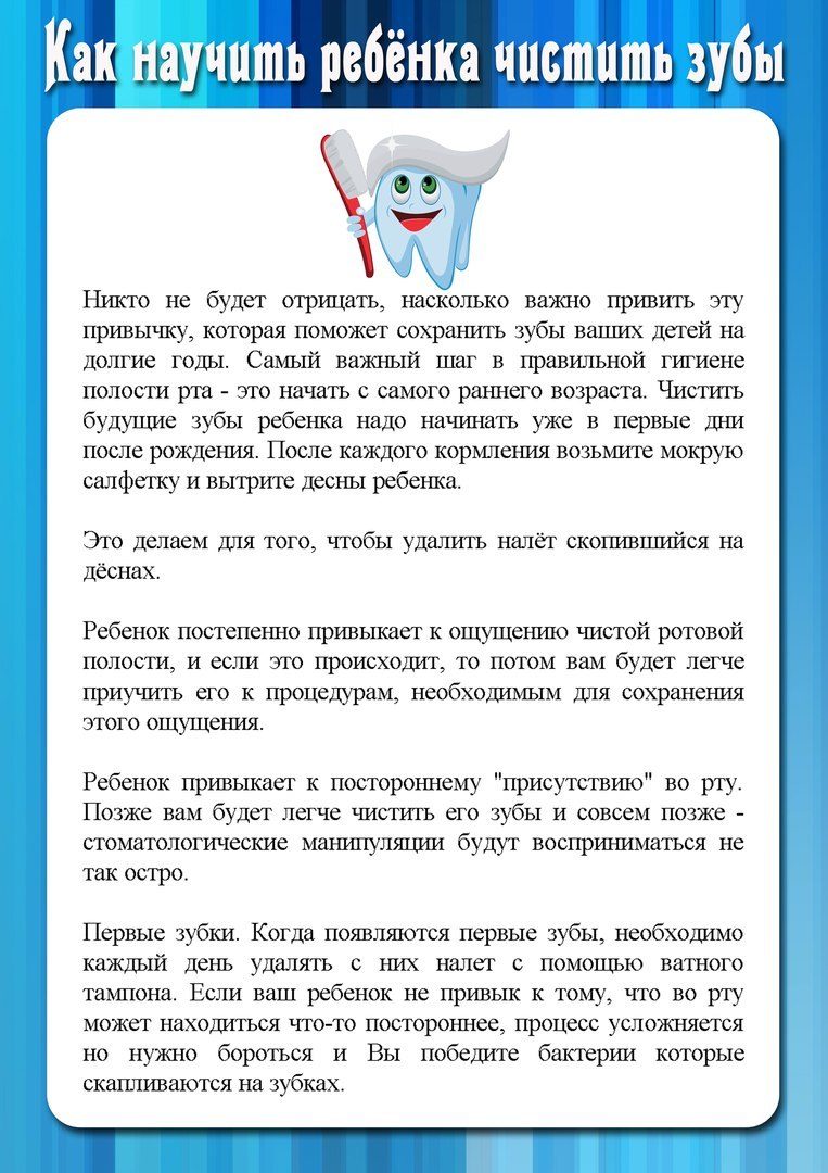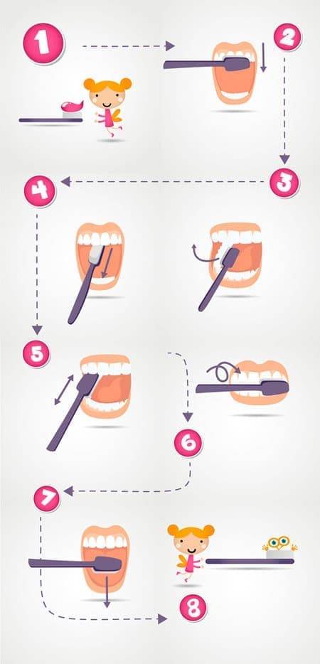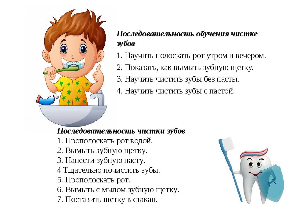 Чистка зубов состоит из нескольких этапов, которые детям, порой, не под силу запомнить. Разбейте её на отдельные шаги и распишите их на листке. Так детям будет проще запомнить их. Как вариант, можно разбавить текст картинками, тем более, если ребенок еще не умеет читать.