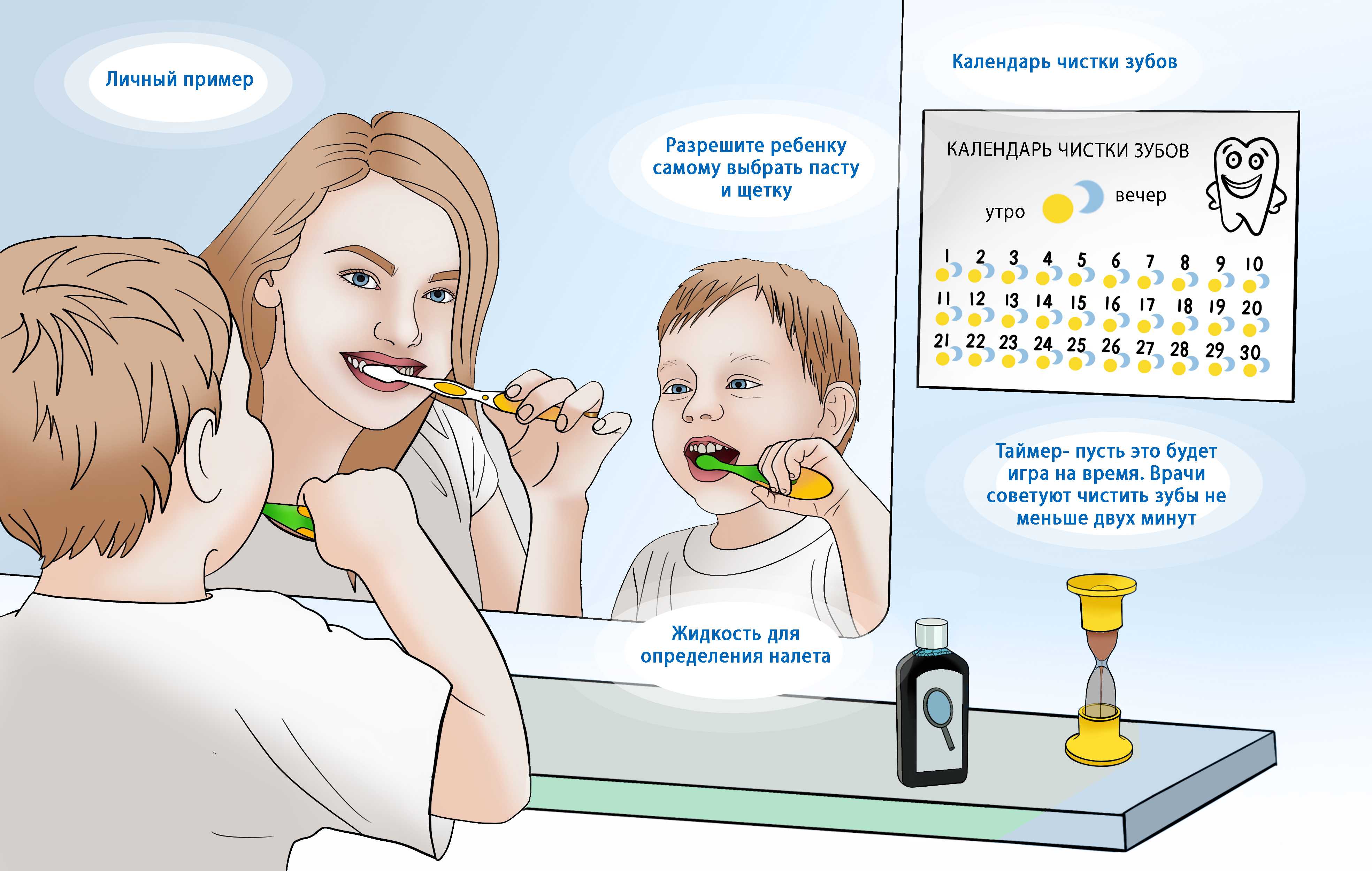 Чистите зубы вместе с ребенком. Личный пример будет более эффективным, чем любые просьбы и уговоры