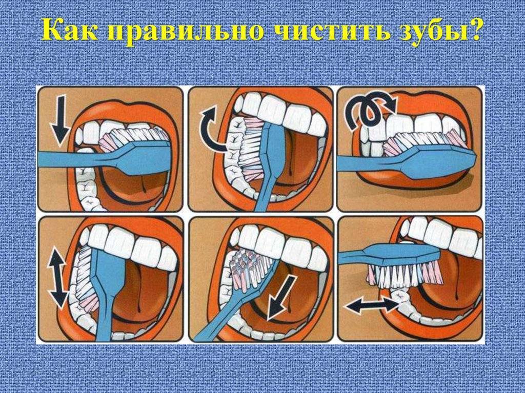 Поверхность задних зубов следует очищать круговыми движениями.