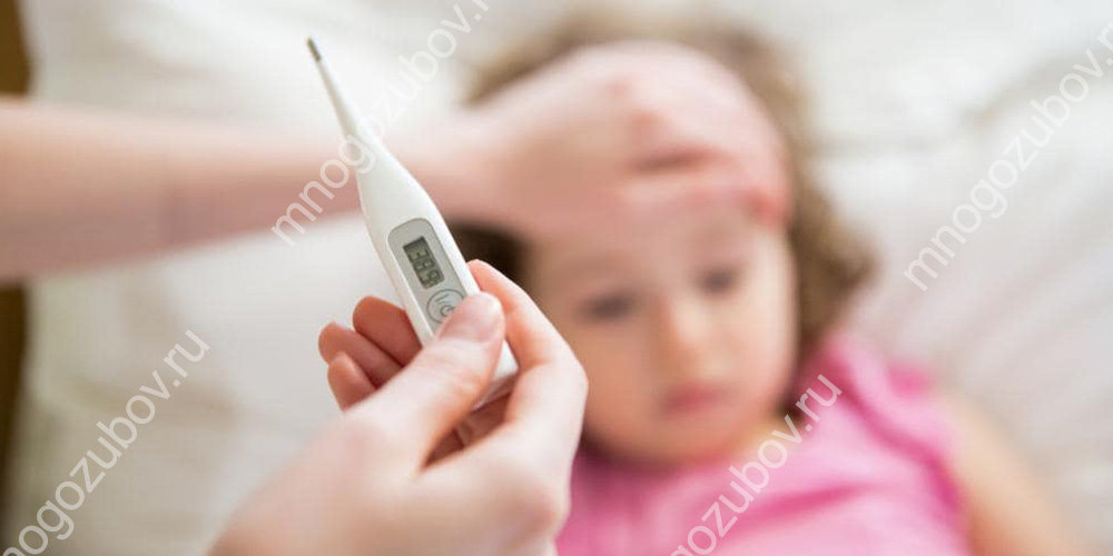 Температура может подниматься до 38 — 39 градусов по Цельсию в течение 3 суток. Не стоит паниковать. Это ответ организма на прохождение зубов через кость и мягкие ткани.