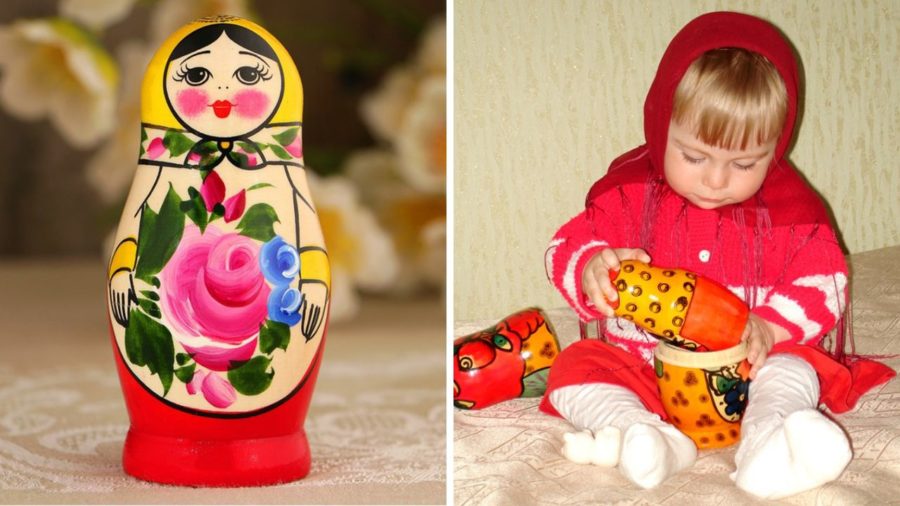 У маленьких детей матрешка вызывает неподдельный интерес и изумление. Сначала взрослый показывает, как правильно раскрывать игрушку, доставать из нее матрешек поменьше, как собирать ее. Затем малыш занимается этим увлекательным делом самостоятельно.